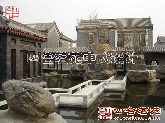 這是一款北方的四合院與江南庭園相結合的一個設計,假山、小橋,翠竹,無不體現了中國文化的精粹,營造出“時有落花至,遠隨流水香”的閑情逸致。游廊將各個院落串連起來,達到了步移景異的效果,力求最大限度地恢復老式北方民居庭院的風貌,展現悠久深邃的文化內涵。